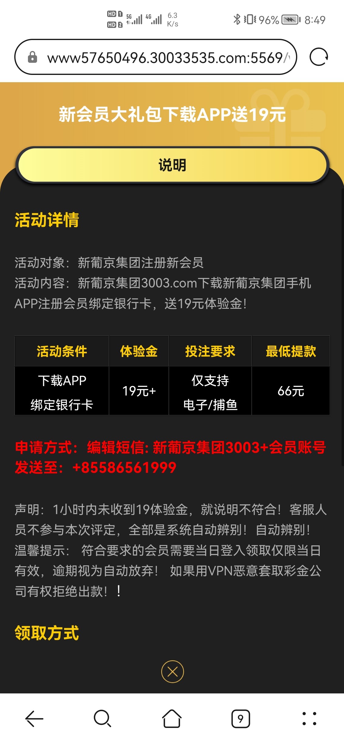 看活动规则编辑短信申请19打66出,老平台了,以前申请过三个号都过了,都去试试